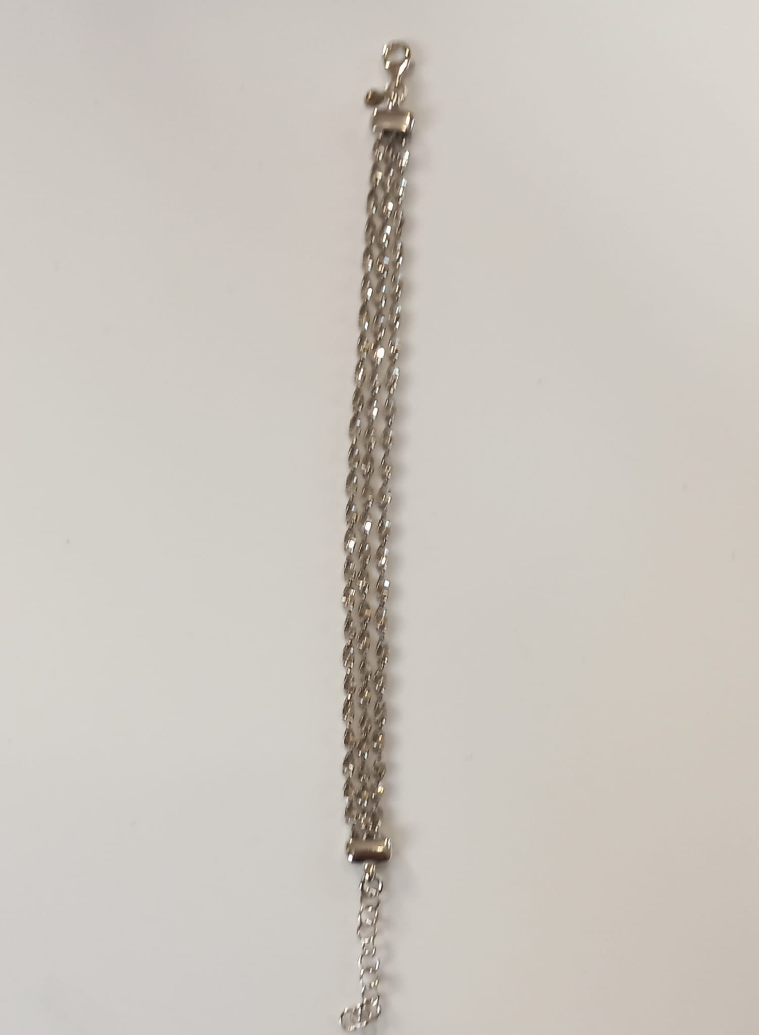 Bracciale in argento 925 rodiato a tre fili. Lunghezza cm. 16 + 3cm. allungatura